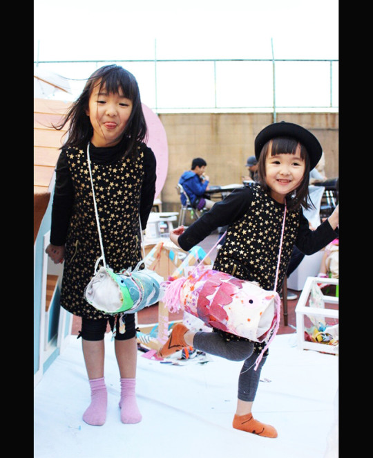 紙の工作をして大きなオブジェを作り上げるワークショップや、シートを切って傘に貼りオリジナルのマイ傘を作るワークショップなど、様々なキッズワークショップが開催されました。