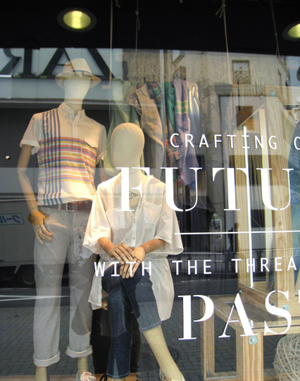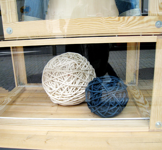 見えにくいですが、後ろの毛糸の暖簾がグラデーションになっているんです。